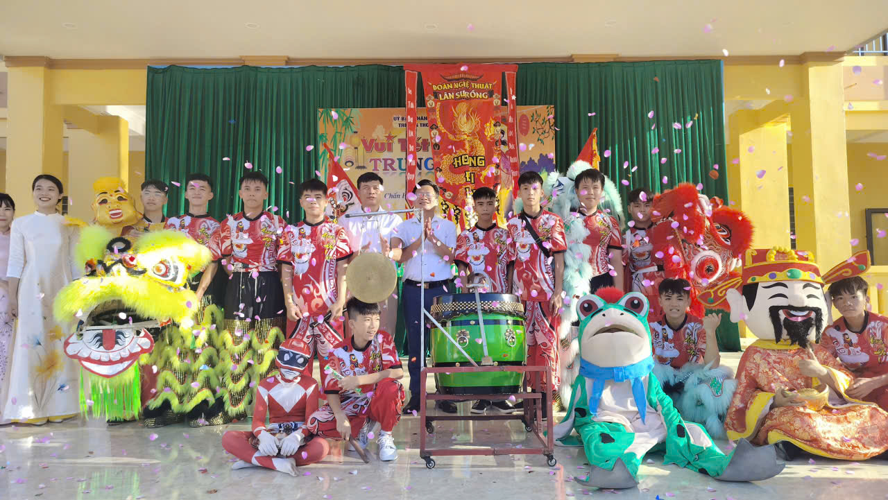 Ngay từ đầu giờ chiều, sân trường đã trở nên rực rỡ với sắc màu cờ hoa, đèn lồng, mâm cỗ trung thu và tiếng trống rộn ràng. Các em học sinh trong những bộ đồng phục tươi sáng, gương mặt háo hức đã cùng nhau tham gia nhiều hoạt động sôi nổi: múa lân – sư – rồng, thưởng thức các tiết mục văn nghệ đặc sắc do học sinh các lớp biểu diễn.